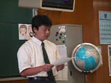 4月から現在までに4回のスキットを実施。ビデオで生徒の様子を見せていただきました。最初のころに比べ、生徒の表情もジェスチャーもかなりのスピードで変化している状況がわかりました。また、基礎英語を毎時間取り入れ、現在では2/3の生徒が家で聴いているそうです。