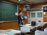 readingからpair readingの順番に音読指導がされ、次の授業では、ペア読みの発表が行われる。その際、最初にやるペアは、教科書を見て読んでもよいが、次にやるペアは、教科書を見てもよいが、言うときは相手を見ていう、そして最後にやる生徒は、教科書の一部を変えてやらなければならないというようないくつかの段階を設けて生徒にチャレンジさせているそうである。この授業のキーワードは